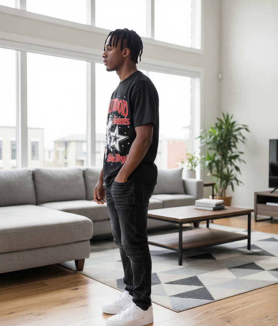 Whether you’re out on the streets or making a statement at a show, the Sacred Angel Tee represents the balance between legacy and rebellion – a signature Hollywood Saints piece.