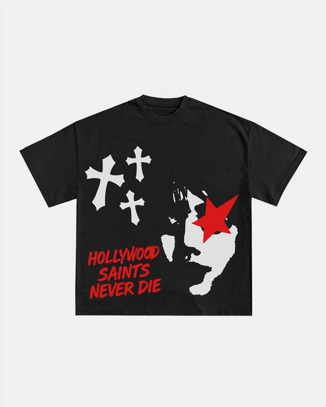 The Hollywood Saints Never Die Black T Shirt combines bold style with lasting comfort. Crafted from high-quality fabric, this graphic tee offers a soft feel and durable wear, making it ideal for everyday use. Its striking black design features the iconic "Never Die" motif, perfect for those who want to express resilience and individuality with confidence. A versatile addition to any wardrobe, this shirt pairs effortlessly with casual or streetwear looks.